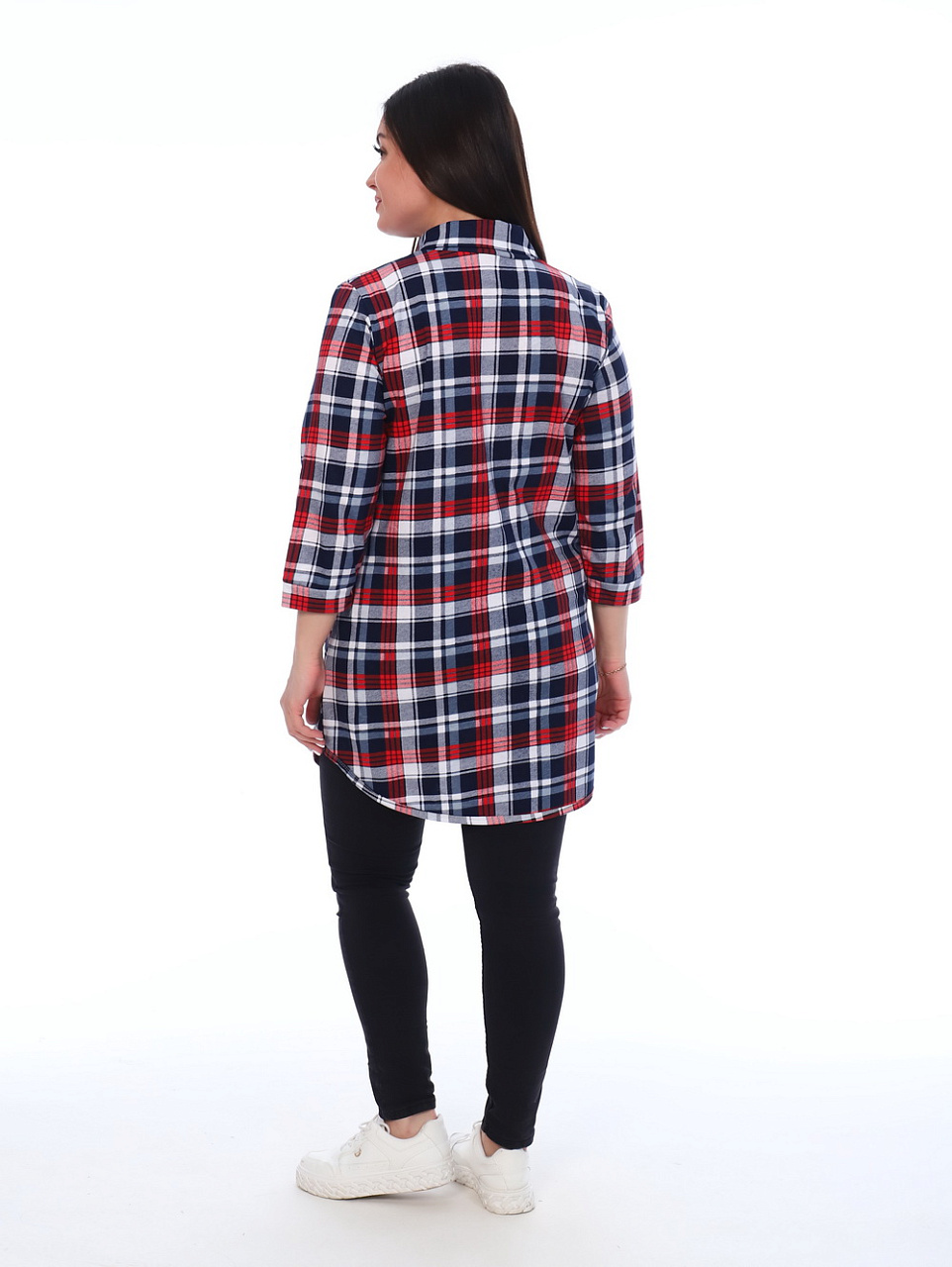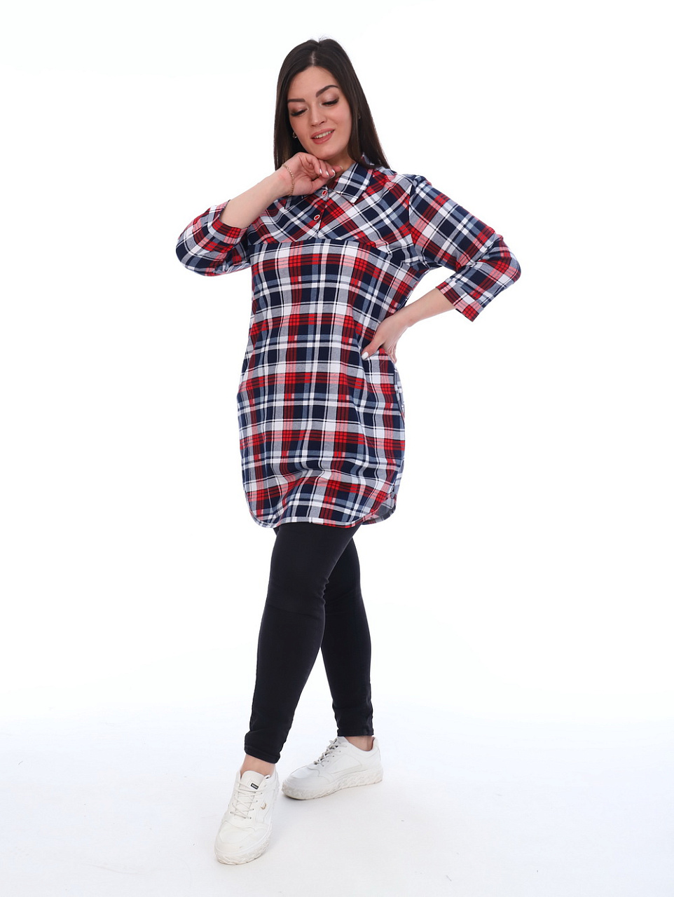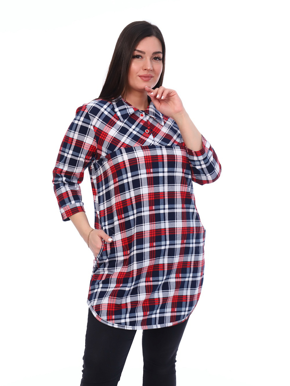 Туника на пуговицах из кулирки удачно дополнит повседневный образ. Планка на пуговицах завершается отложным воротником, линия груди подчеркивается оригинальным кроем модели. Боковые карманы, округлый подол и рукава ¾ позволяют чувствовать себя комфортно.