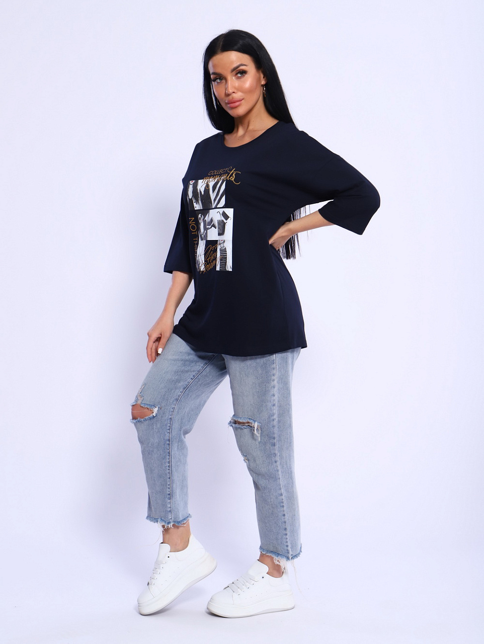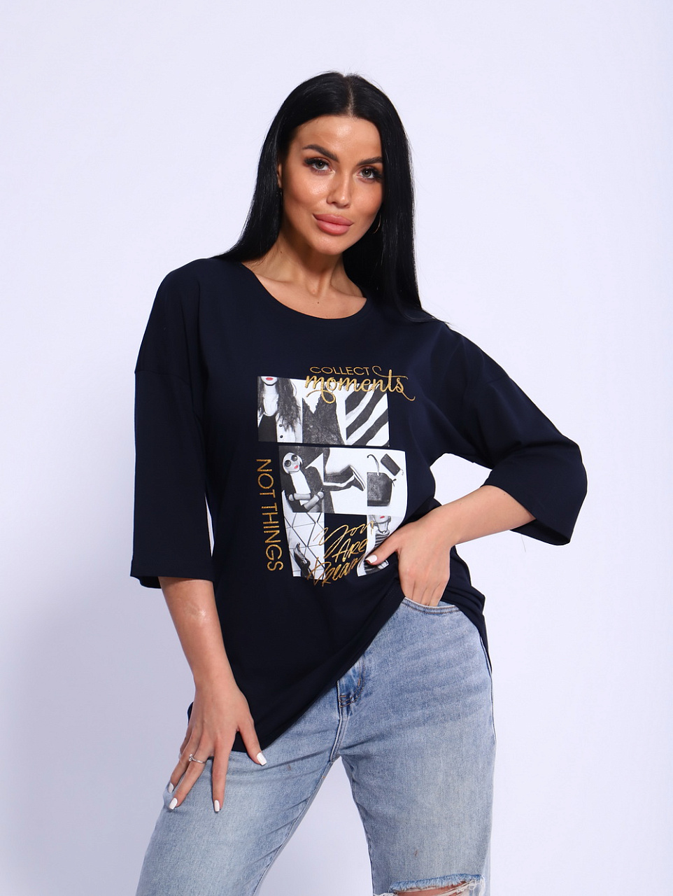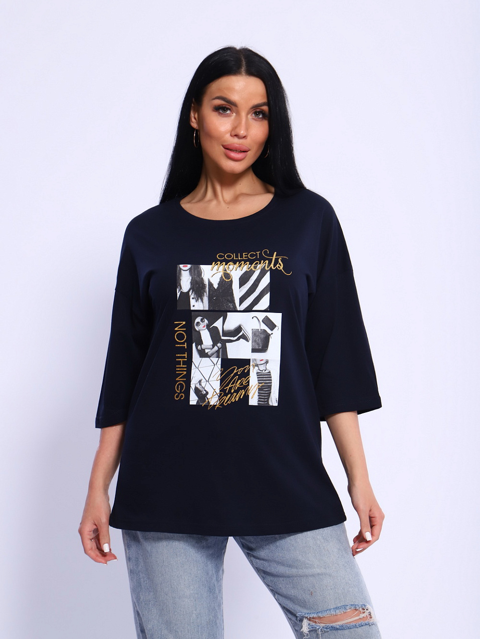 Вы любите в своем стиле одежды в первую очередь комфорт?Тогда футболка «Вита» создана специально для Вас! Удлиненный, спущенный рукав, прямой силуэт скроют все недочеты фигуры.Необычная печать на полочке изделия привлечет внимание окружающих и сделает Вас его центром. Футболку «Вита» можно носить и с джинсами,и с брюками ,и даже с юбкой.