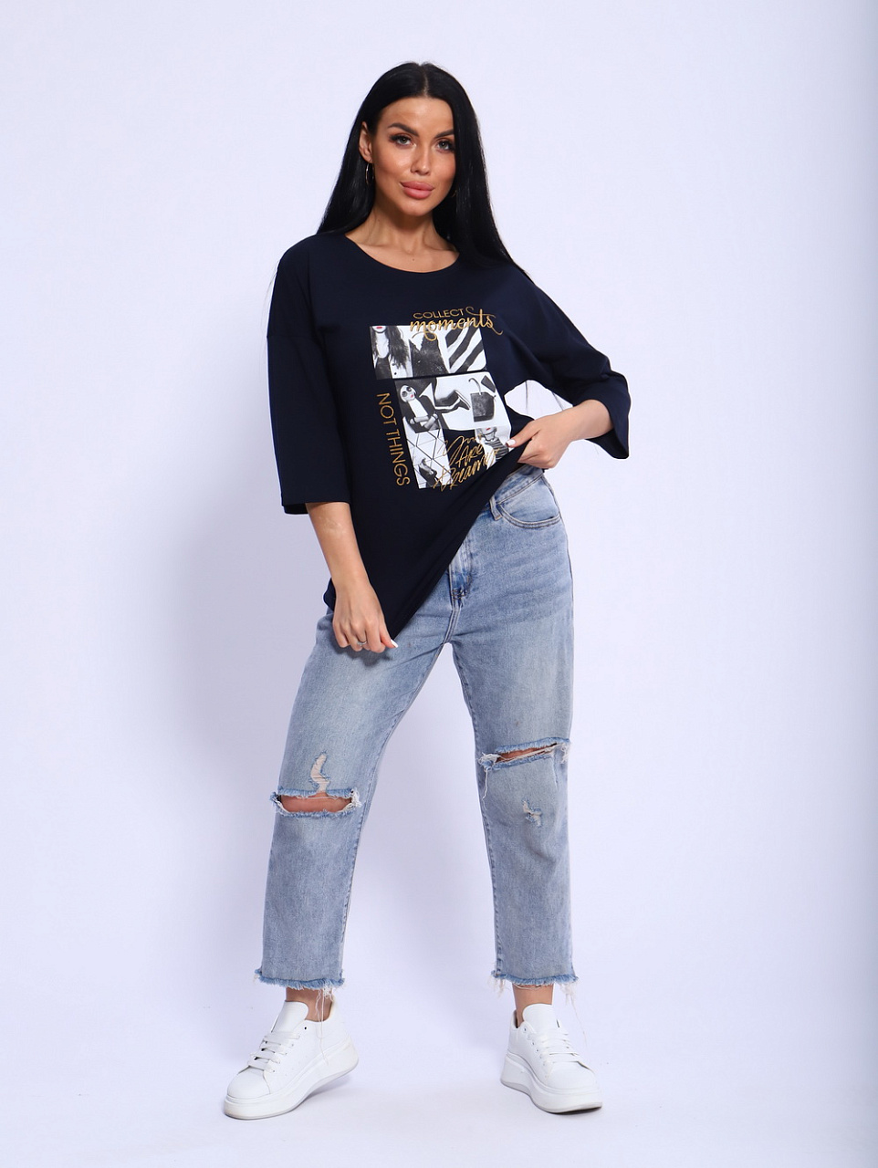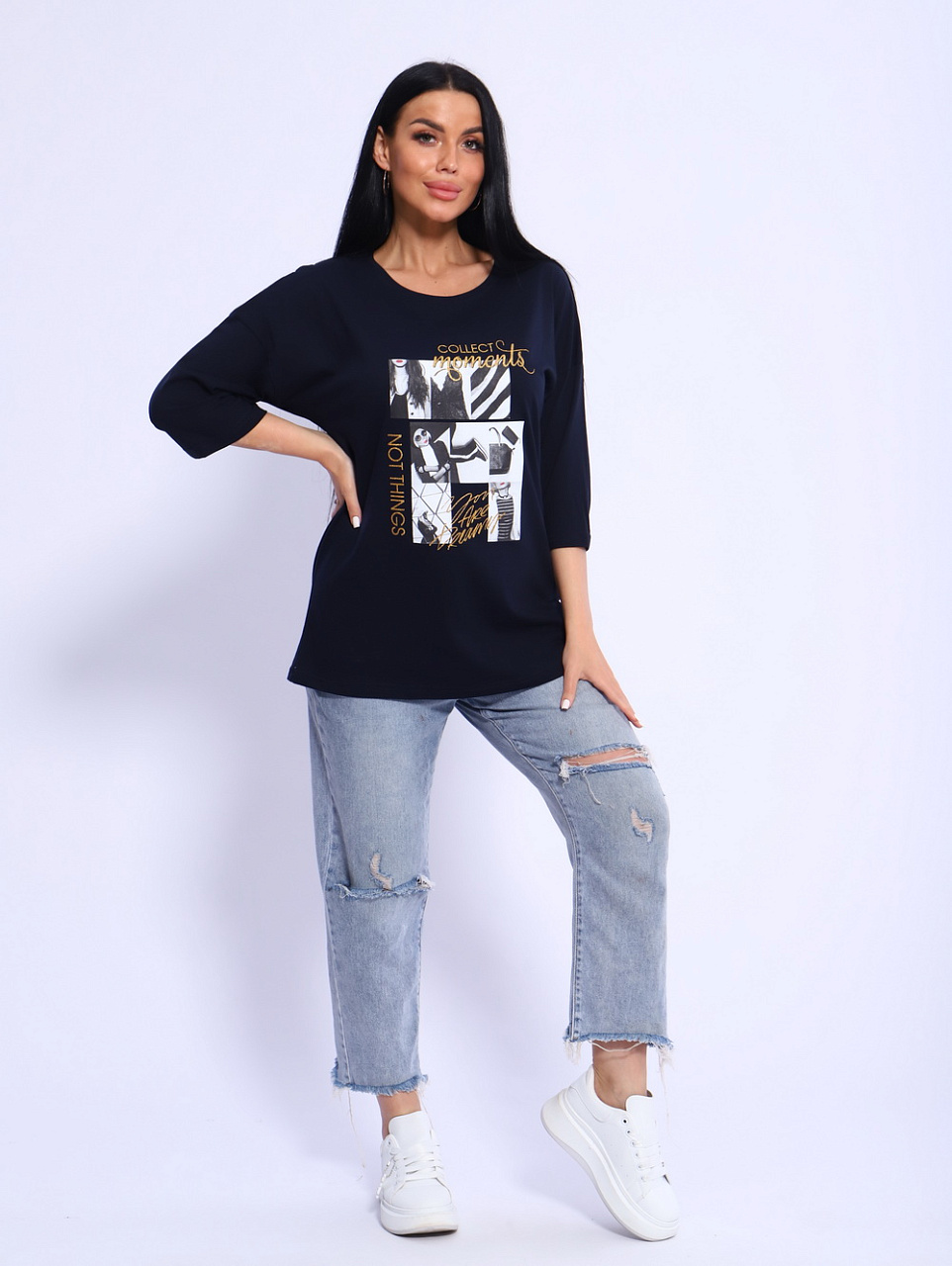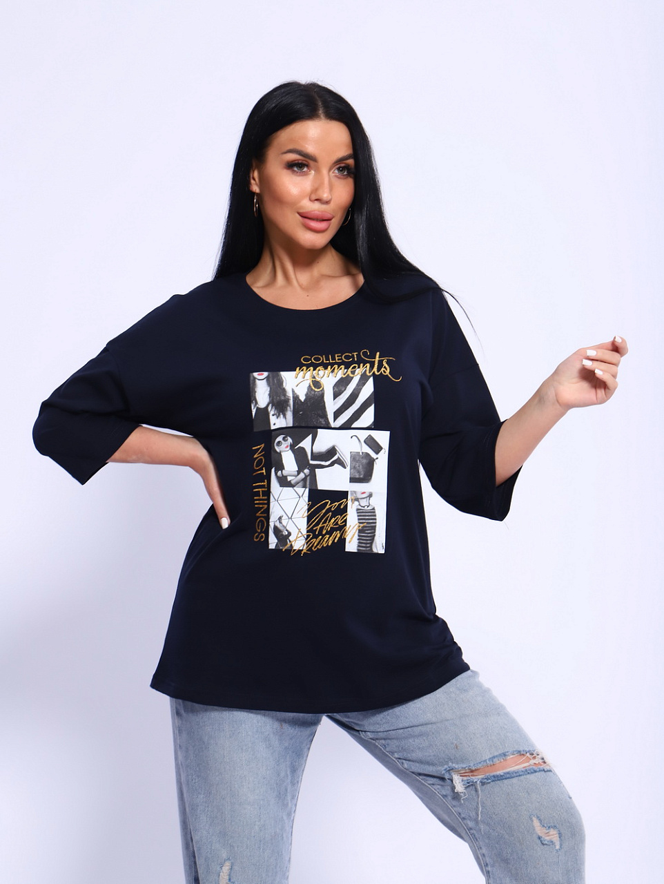 Вы любите в своем стиле одежды в первую очередь комфорт?Тогда футболка «Вита» создана специально для Вас! Удлиненный, спущенный рукав, прямой силуэт скроют все недочеты фигуры.Необычная печать на полочке изделия привлечет внимание окружающих и сделает Вас его центром. Футболку «Вита» можно носить и с джинсами,и с брюками ,и даже с юбкой.