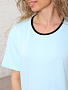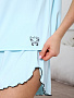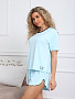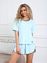 Костюм выполнен в четырех цветах:пастельных,приглушенных ,невероятно нежных.Каждая молодая девушка сможет выбрать подходящий лично ей.Но мы не могли не добавить немного яркости и окаймили горловину футболки черной отделкой,а по низу-печатью маленькой милой бабочки.Нижняя часть костюма-короткие шорты.Они изготовлены из той же ткани ,что и верх,но обработаны на краеобметочной машине,с небольшими фривольными разрезами по бокам,создавая ощущение легкого рюша.Пижама «Соблазн» для ярких,смелых девушек,которые любят выглядеть дома на все 100% и не боятся быть дерзкими.