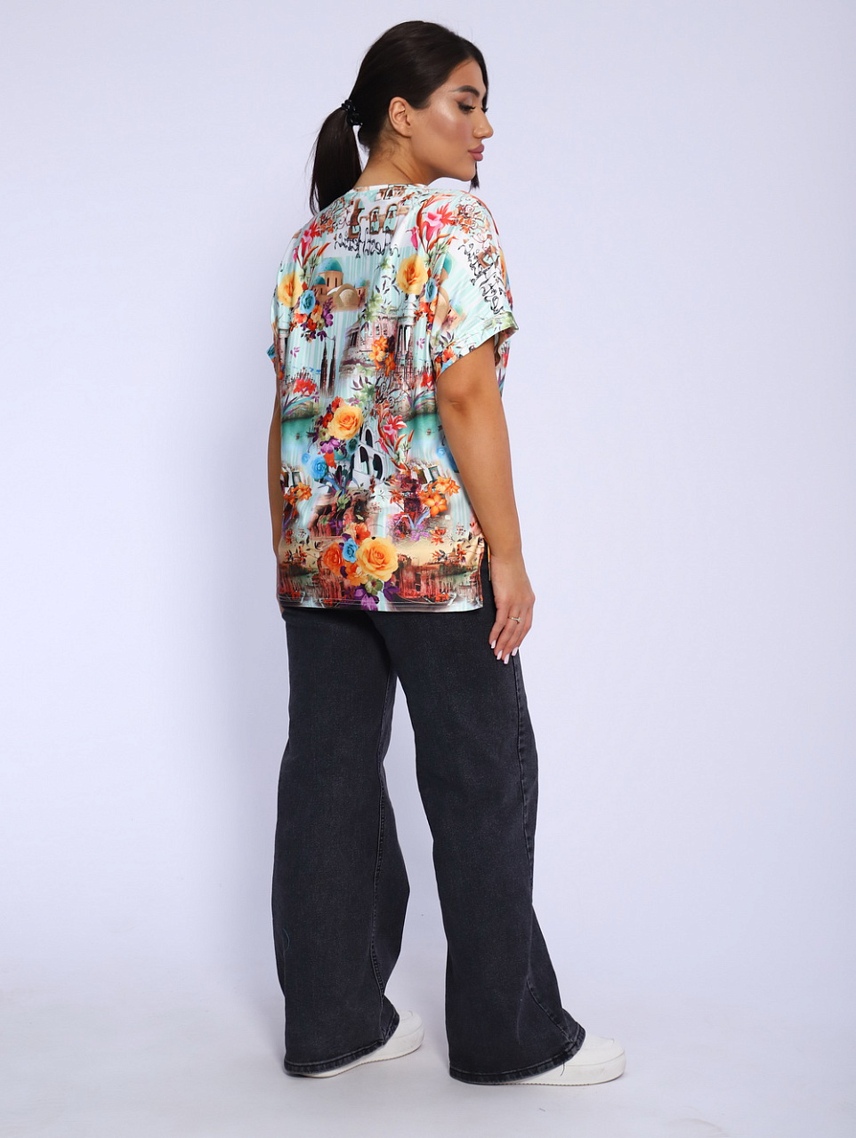 Наше изделие идеально подходит для романтичной, нежной натуры. Свободный крой позволяет чувствовать себя уверенной и максимально комфортно. Оригинальный дизайн и необычный принт изделия сделает любую женщину неотразимой.